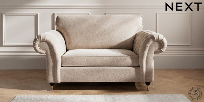 7.2.10 Gosford Highback II Deep Sit 2 Seater Small Sofa Cotswold Chenille Light Natural Castor - Dark | Made Click here to use our website with more accessibility support, for example screen readers