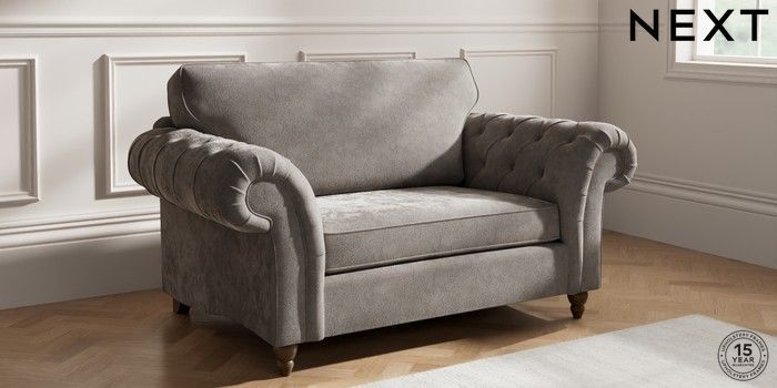 7.2.10 Gosford Highback II Deep Sit 2 Seater Small Sofa Distressed Velour French Grey Low Turned - Mid | Made Click here to use our website with more accessibility support, for example screen readers