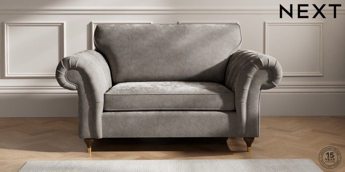 7.2.10 Gosford Highback II Deep Sit 2 Seater Small Sofa Distressed Velour French Grey Modern Turned Metal Cap - Mid | Made Click here to use our website with more accessibility support, for example screen readers