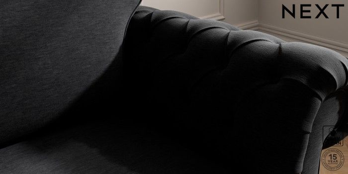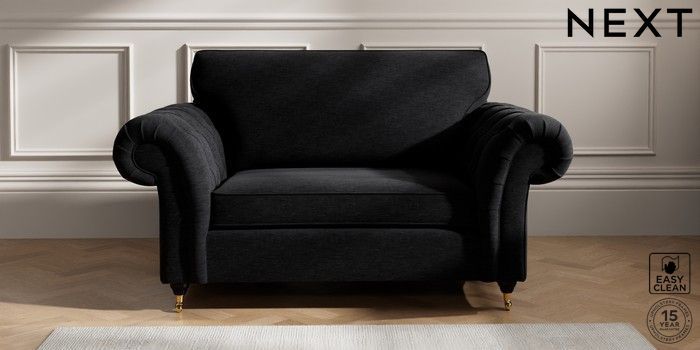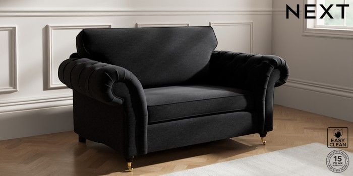 7.2.10 Gosford Highback II Deep Sit 2 Seater Small Sofa Fine Chenille Easy Clean Black Castor - Dark | Made Click here to use our website with more accessibility support, for example screen readers