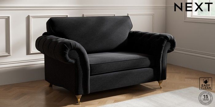 7.2.10 Gosford Highback II Deep Sit 2 Seater Small Sofa Fine Chenille Easy Clean Black Castor - Light | Made Click here to use our website with more accessibility support, for example screen readers