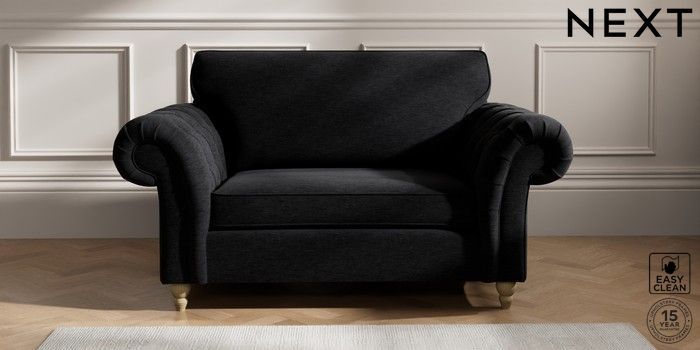 7.2.10 Gosford Highback II Deep Sit 2 Seater Small Sofa Fine Chenille Easy Clean Black Low Turned - Light | Made Click here to use our website with more accessibility support, for example screen readers
