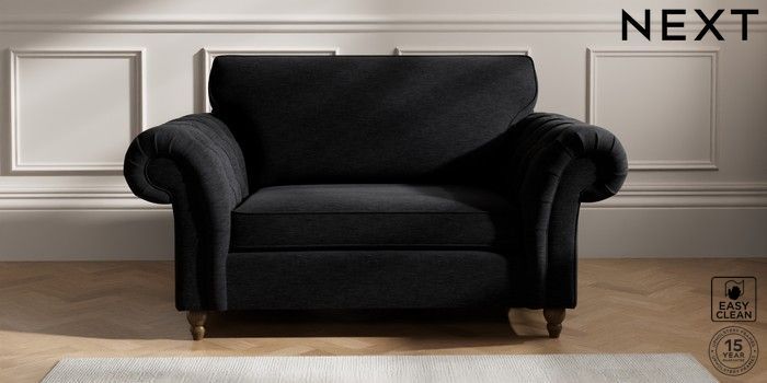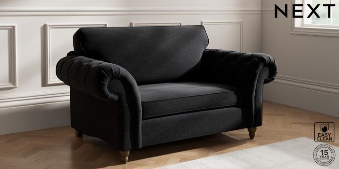7.2.10 Gosford Highback II Deep Sit 2 Seater Small Sofa Fine Chenille Easy Clean Black Low Turned - Mid | Made Click here to use our website with more accessibility support, for example screen readers