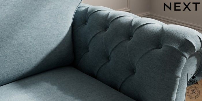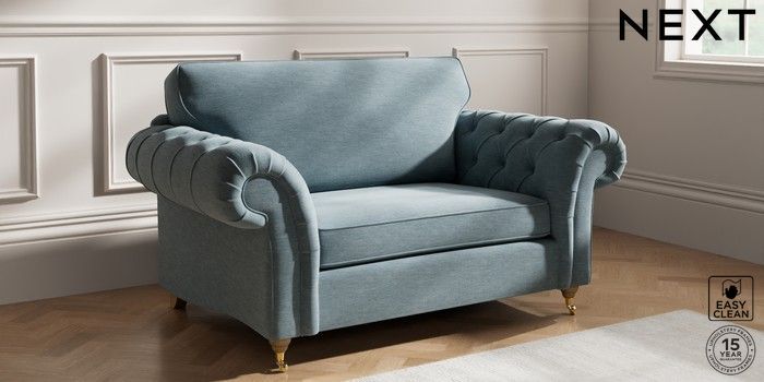7.2.10 Gosford Highback II Deep Sit 2 Seater Small Sofa Fine Chenille Easy Clean Mid Blue Castor - Light | Made Click here to use our website with more accessibility support, for example screen readers