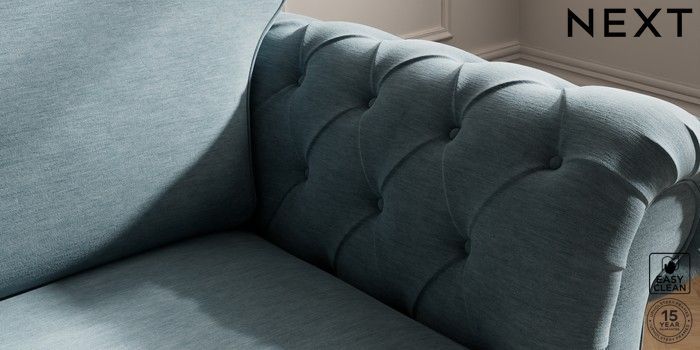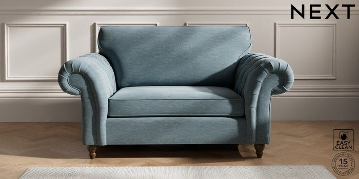 7.2.10 Gosford Highback II Deep Sit 2 Seater Small Sofa Fine Chenille Easy Clean Mid Blue Low Turned - Mid | Made Click here to use our website with more accessibility support, for example screen readers