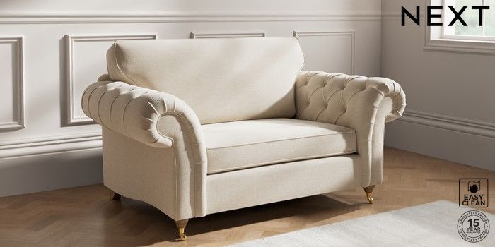 7.2.10 Gosford Highback II Deep Sit 2 Seater Small Sofa Fine Chenille Easy Clean Oyster Castor - Light | Made Click here to use our website with more accessibility support, for example screen readers