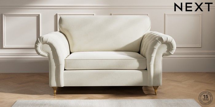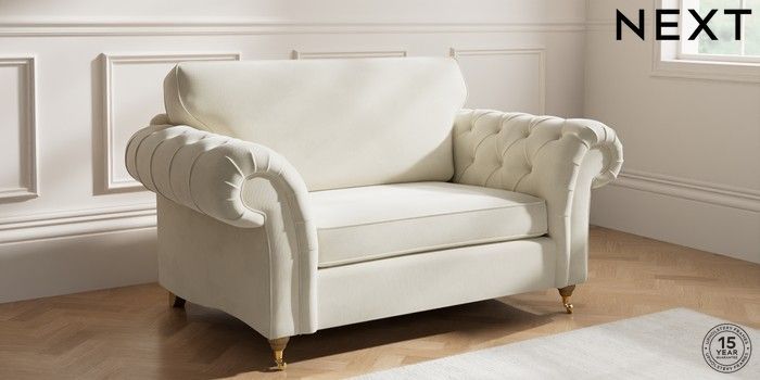 7.2.10 Gosford Highback II Deep Sit 2 Seater Small Sofa Luxe Chenille Oyster Castor - Light | Made Click here to use our website with more accessibility support, for example screen readers