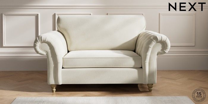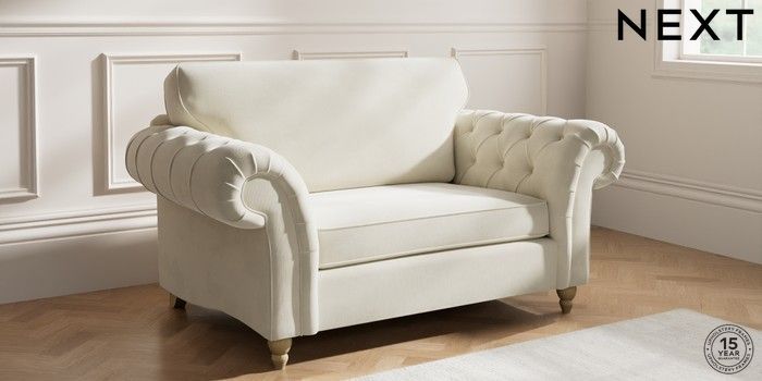 7.2.10 Gosford Highback II Deep Sit 2 Seater Small Sofa Luxe Chenille Oyster Low Turned - Light | Made Click here to use our website with more accessibility support, for example screen readers