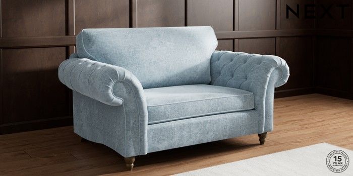 7.2.10 Gosford Highback II Deep Sit 2 Seater Small Sofa Plush Chenille Light Blue Low Turned - Mid | Made Click here to use our website with more accessibility support, for example screen readers