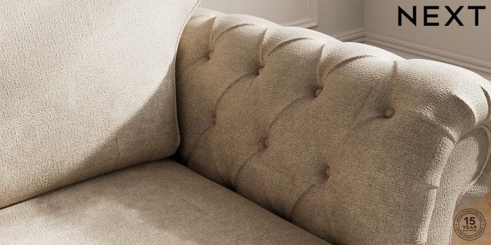 7.2.10 Gosford Highback II Deep Sit 2 Seater Small Sofa Plush Chenille Light Natural Castor - Mid | Made Click here to use our website with more accessibility support, for example screen readers
