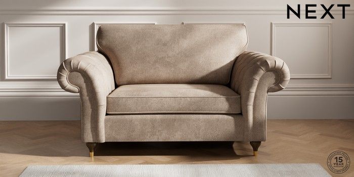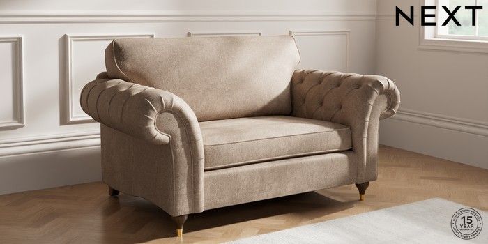 7.2.10 Gosford Highback II Deep Sit 2 Seater Small Sofa Plush Chenille Mid Natural Modern Turned Metal Cap - Mid | Made Click here to use our website with more accessibility support, for example screen readers
