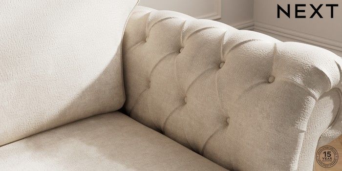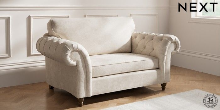 7.2.10 Gosford Highback II Deep Sit 2 Seater Small Sofa Plush Chenille Oyster Low Turned - Mid | Made Click here to use our website with more accessibility support, for example screen readers