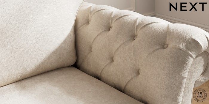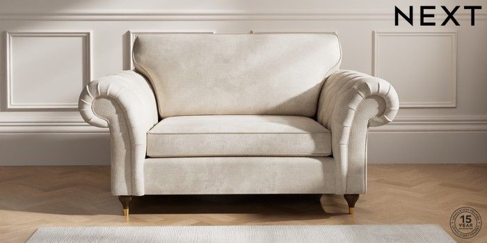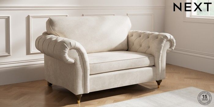7.2.10 Gosford Highback II Deep Sit 2 Seater Small Sofa Plush Chenille Oyster Modern Turned Metal Cap - Mid | Made Click here to use our website with more accessibility support, for example screen readers