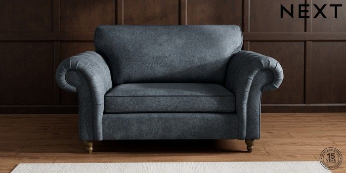 7.2.10 Gosford Highback II Deep Sit 2 Seater Small Sofa Plush Chenille Slate Blue Low Turned - Mid | Made Click here to use our website with more accessibility support, for example screen readers
