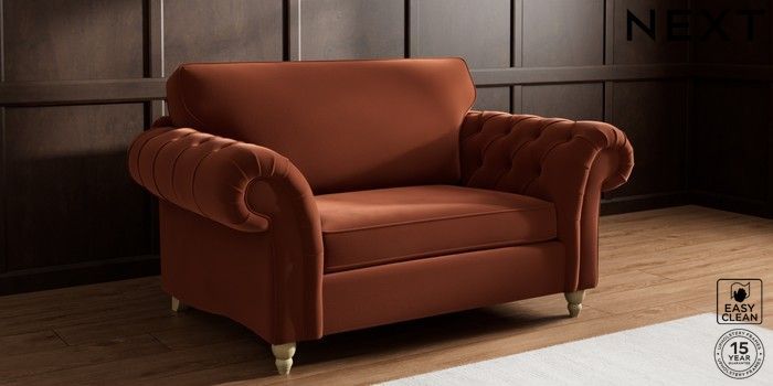 7.2.10 Gosford Highback II Deep Sit 2 Seater Small Sofa Plush Velvet Easy Clean Ginger Orange Low Turned - Light | Made Click here to use our website with more accessibility support, for example screen readers