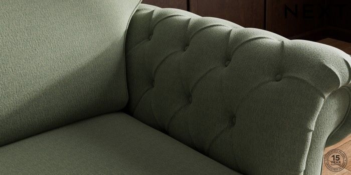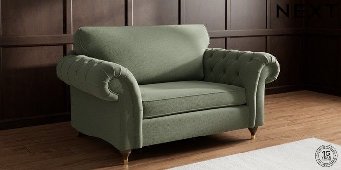 7.2.10 Gosford Highback II Deep Sit 2 Seater Small Sofa Relaxed Linen Look Dark Green Modern Turned Metal Cap - Mid | Made Click here to use our website with more accessibility support, for example screen readers