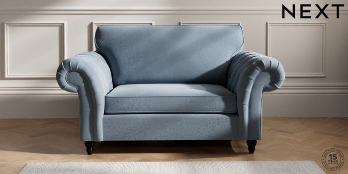 7.2.10 Gosford Highback II Deep Sit 2 Seater Small Sofa Relaxed Linen Look Mid Blue Low Turned - Dark | Made Click here to use our website with more accessibility support, for example screen readers