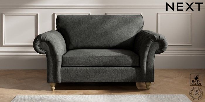 7.2.10 Gosford Highback II Deep Sit 2 Seater Small Sofa Tweedy Blend Easy Clean Charcoal Grey Low Turned - Light | Made Click here to use our website with more accessibility support, for example screen readers