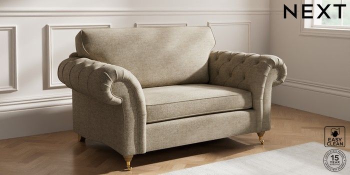 7.2.10 Gosford Highback II Deep Sit 2 Seater Small Sofa Woven Chenille Easy Clean Mid Natural Castor - Light | Made Click here to use our website with more accessibility support, for example screen readers