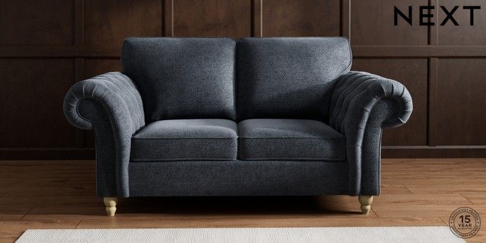 7.2.10 Gosford Highback II Deep Sit 2 Seater Sofa Boucle Chenille Dark Slate Blue Low Turned - Light | Made Click here to use our website with more accessibility support, for example screen readers