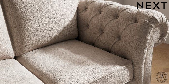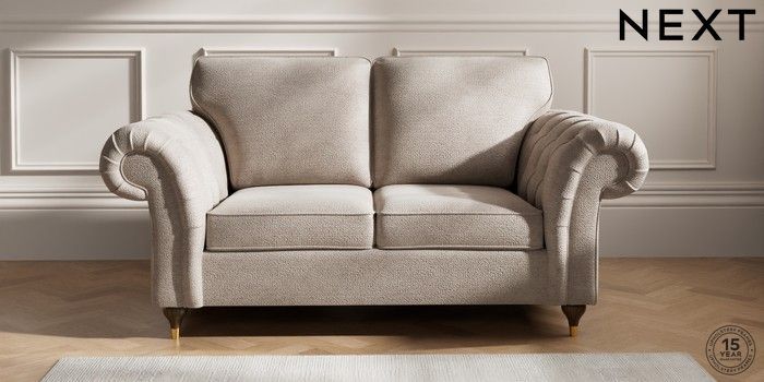 7.2.10 Gosford Highback II Deep Sit 2 Seater Sofa Boucle Chenille Light Natural Modern Turned Metal Cap - Mid | Made Click here to use our website with more accessibility support, for example screen readers
