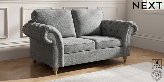 7.2.10 Gosford Highback II Deep Sit 2 Seater Sofa Chunky Boucle Easy Clean Mid Grey Low Turned - Light | Made Click here to use our website with more accessibility support, for example screen readers