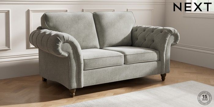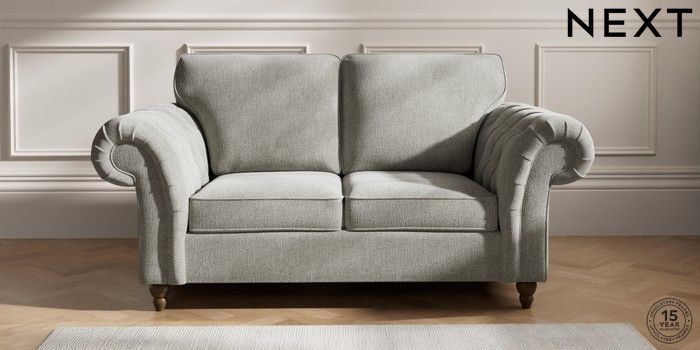 7.2.10 Gosford Highback II Deep Sit 2 Seater Sofa Chunky Chenille Light Grey Low Turned - Mid | Made Click here to use our website with more accessibility support, for example screen readers