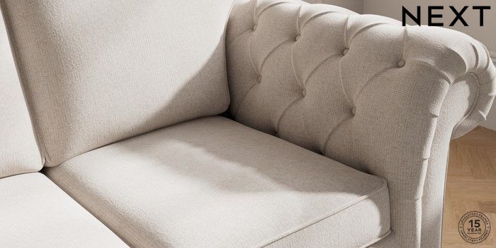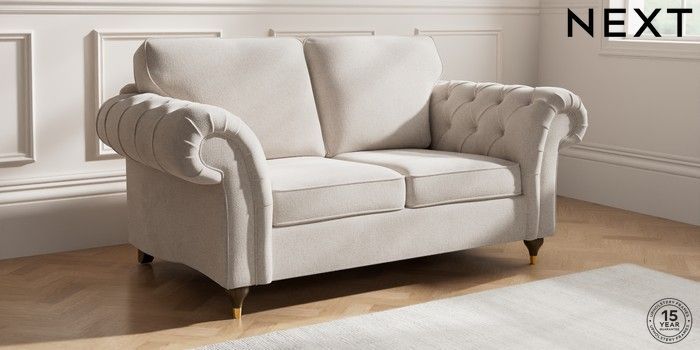 7.2.10 Gosford Highback II Deep Sit 2 Seater Sofa Chunky Chenille Oyster Modern Turned Metal Cap - Mid | Made Click here to use our website with more accessibility support, for example screen readers