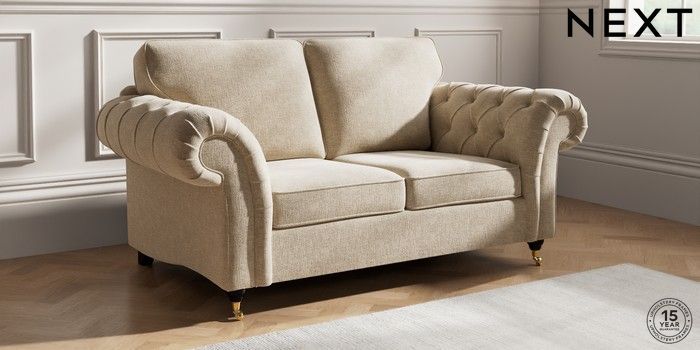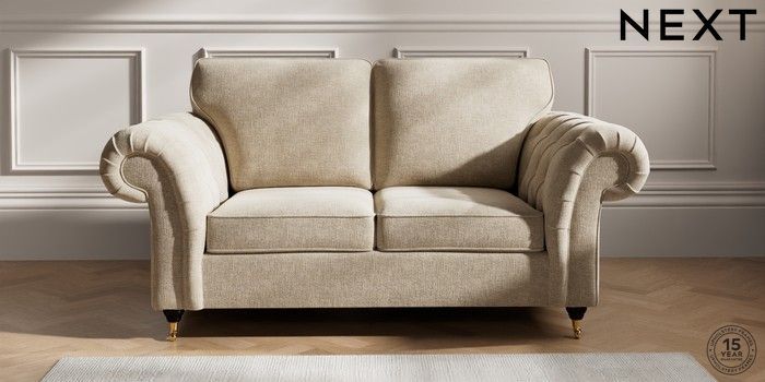 7.2.10 Gosford Highback II Deep Sit 2 Seater Sofa Chunky Weave Cream Castor - Dark | Made Click here to use our website with more accessibility support, for example screen readers