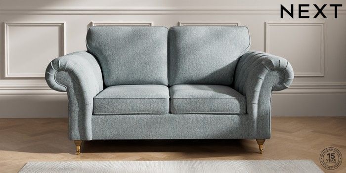 7.2.10 Gosford Highback II Deep Sit 2 Seater Sofa Chunky Weave Mid Blue Castor - Light | Made Click here to use our website with more accessibility support, for example screen readers