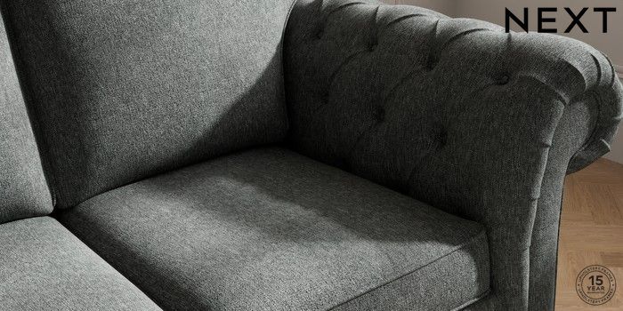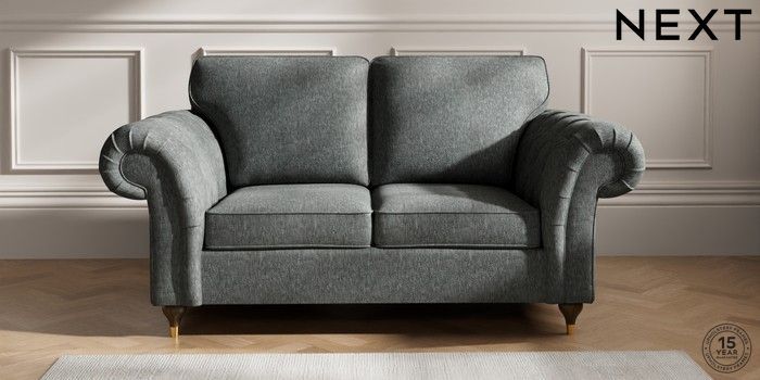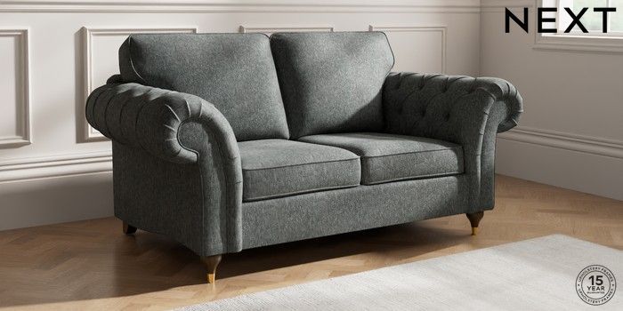 7.2.10 Gosford Highback II Deep Sit 2 Seater Sofa Cotswold Chenille Dark Grey Modern Turned Metal Cap - Mid | Made Click here to use our website with more accessibility support, for example screen readers