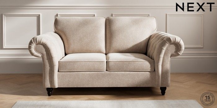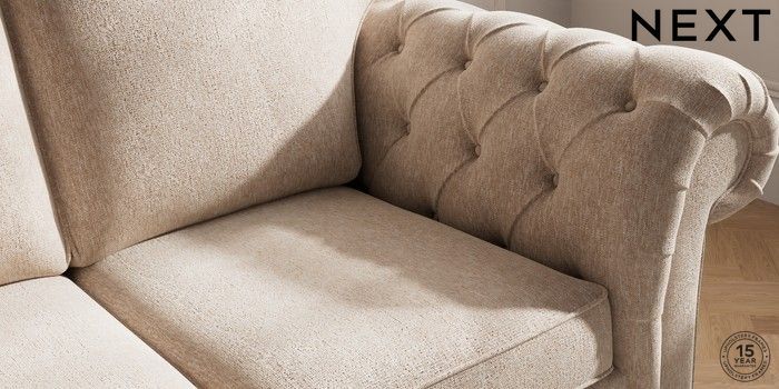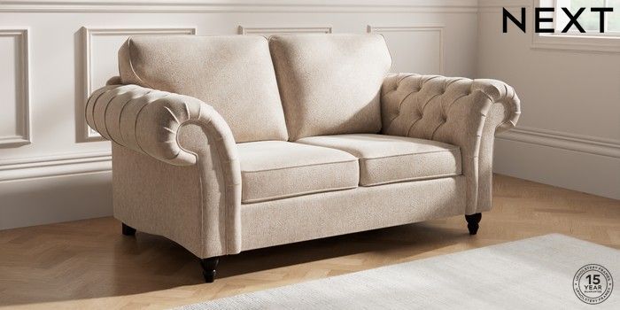 7.2.10 Gosford Highback II Deep Sit 2 Seater Sofa Cotswold Chenille Light Natural Low Turned - Dark | Made Click here to use our website with more accessibility support, for example screen readers