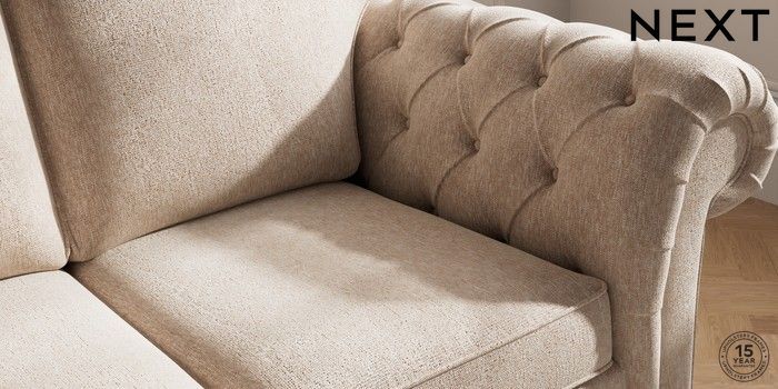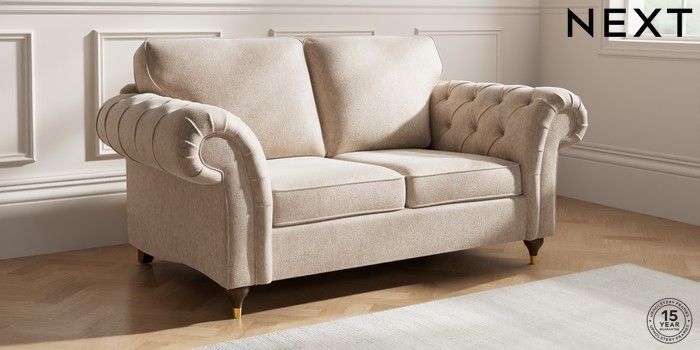 7.2.10 Gosford Highback II Deep Sit 2 Seater Sofa Cotswold Chenille Light Natural Modern Turned Metal Cap - Mid | Made Click here to use our website with more accessibility support, for example screen readers