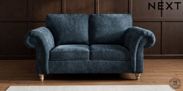 7.2.10 Gosford Highback II Deep Sit 2 Seater Sofa Distressed Velour Midnight Blue Low Turned - Light | Made Click here to use our website with more accessibility support, for example screen readers
