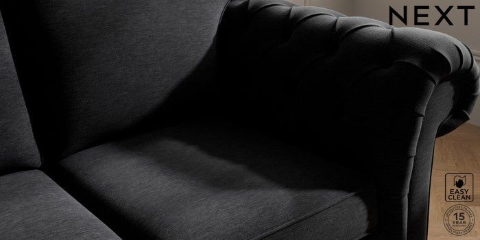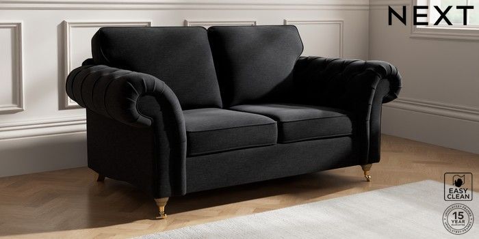 7.2.10 Gosford Highback II Deep Sit 2 Seater Sofa Fine Chenille Easy Clean Black Castor - Light | Made Click here to use our website with more accessibility support, for example screen readers