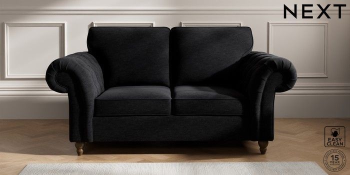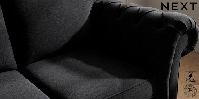 7.2.10 Gosford Highback II Deep Sit 2 Seater Sofa Fine Chenille Easy Clean Black Low Turned - Mid | Made Click here to use our website with more accessibility support, for example screen readers