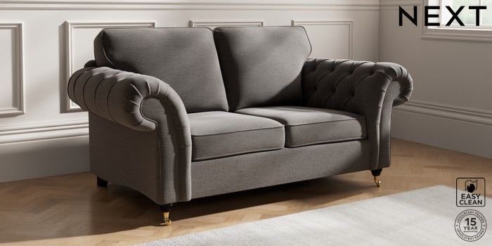 7.2.10 Gosford Highback II Deep Sit 2 Seater Sofa Fine Chenille Easy Clean Dark Smoke Grey Castor - Dark | Made Click here to use our website with more accessibility support, for example screen readers