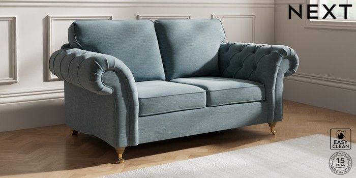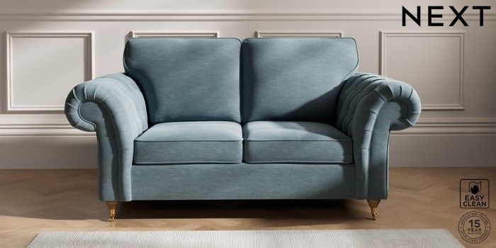 7.2.10 Gosford Highback II Deep Sit 2 Seater Sofa Fine Chenille Easy Clean Mid Blue Castor - Light | Made Click here to use our website with more accessibility support, for example screen readers
