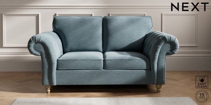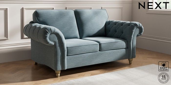7.2.10 Gosford Highback II Deep Sit 2 Seater Sofa Fine Chenille Easy Clean Mid Blue Low Turned - Light | Made Click here to use our website with more accessibility support, for example screen readers