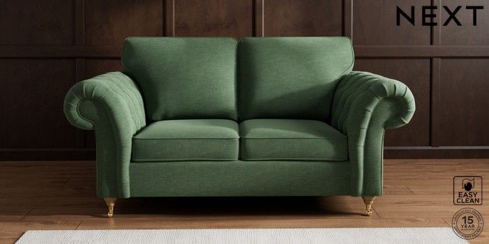 7.2.10 Gosford Highback II Deep Sit 2 Seater Sofa Fine Chenille Easy Clean Mid Khaki Green Castor - Light | Made Click here to use our website with more accessibility support, for example screen readers