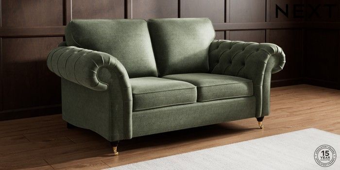 7.2.10 Gosford Highback II Deep Sit 2 Seater Sofa Luxe Chenille Mid Green Castor - Dark | Made Click here to use our website with more accessibility support, for example screen readers