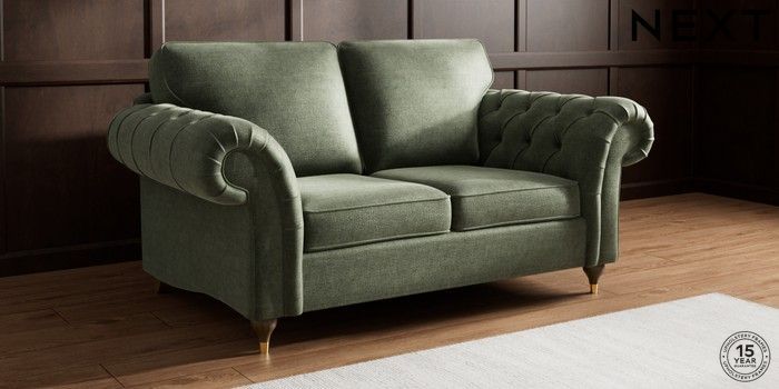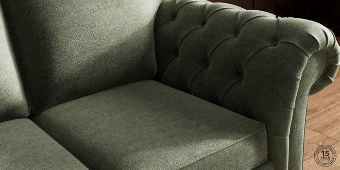 7.2.10 Gosford Highback II Deep Sit 2 Seater Sofa Luxe Chenille Mid Green Modern Turned Metal Cap - Mid | Made Click here to use our website with more accessibility support, for example screen readers