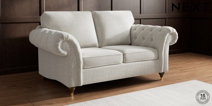7.2.10 Gosford Highback II Deep Sit 2 Seater Sofa Multi Weave Light Blue Modern Turned Metal Cap - Mid | Made Click here to use our website with more accessibility support, for example screen readers