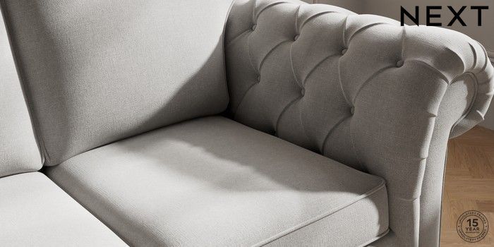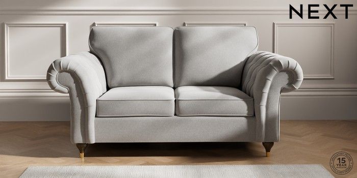 7.2.10 Gosford Highback II Deep Sit 2 Seater Sofa Natural Mix Light Grey Modern Turned Metal Cap - Mid | Made Click here to use our website with more accessibility support, for example screen readers