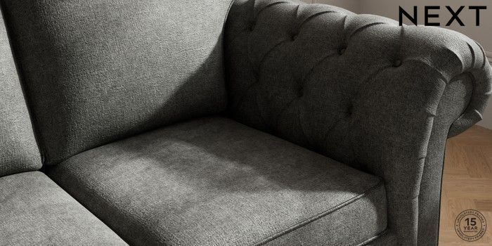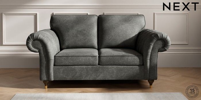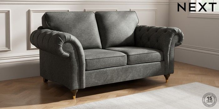 7.2.10 Gosford Highback II Deep Sit 2 Seater Sofa Plush Chenille Dark Grey Modern Turned Metal Cap - Mid | Made Click here to use our website with more accessibility support, for example screen readers