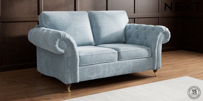 7.2.10 Gosford Highback II Deep Sit 2 Seater Sofa Plush Chenille Light Blue Castor - Mid | Made Click here to use our website with more accessibility support, for example screen readers