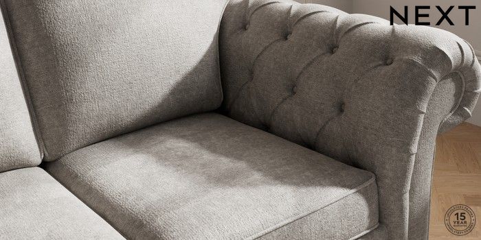 7.2.10 Gosford Highback II Deep Sit 2 Seater Sofa Plush Chenille Light Grey Modern Turned Metal Cap - Mid | Made Click here to use our website with more accessibility support, for example screen readers