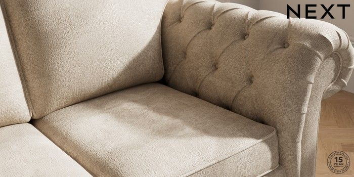 7.2.10 Gosford Highback II Deep Sit 2 Seater Sofa Plush Chenille Light Natural Modern Turned Metal Cap - Mid | Made Click here to use our website with more accessibility support, for example screen readers