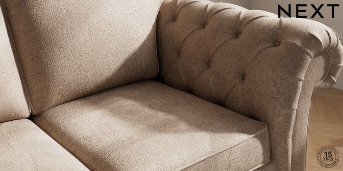 7.2.10 Gosford Highback II Deep Sit 2 Seater Sofa Plush Chenille Mid Natural Modern Turned Metal Cap - Mid | Made Click here to use our website with more accessibility support, for example screen readers