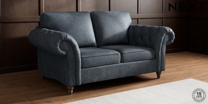 7.2.10 Gosford Highback II Deep Sit 2 Seater Sofa Plush Chenille Slate Blue Low Turned - Mid | Made Click here to use our website with more accessibility support, for example screen readers